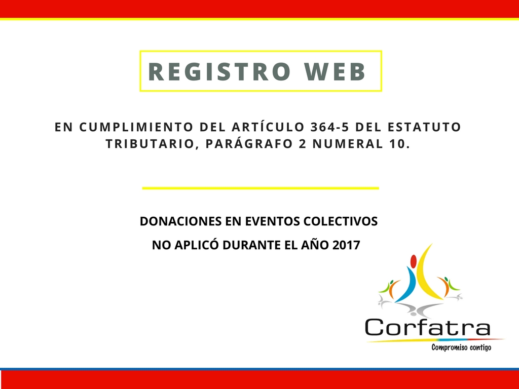 La Corporación Corfatra publica la siguiente información en cumplimiento del artículo 364-5 del Estatuto Tributario.