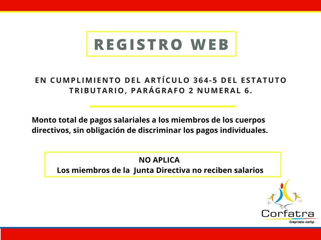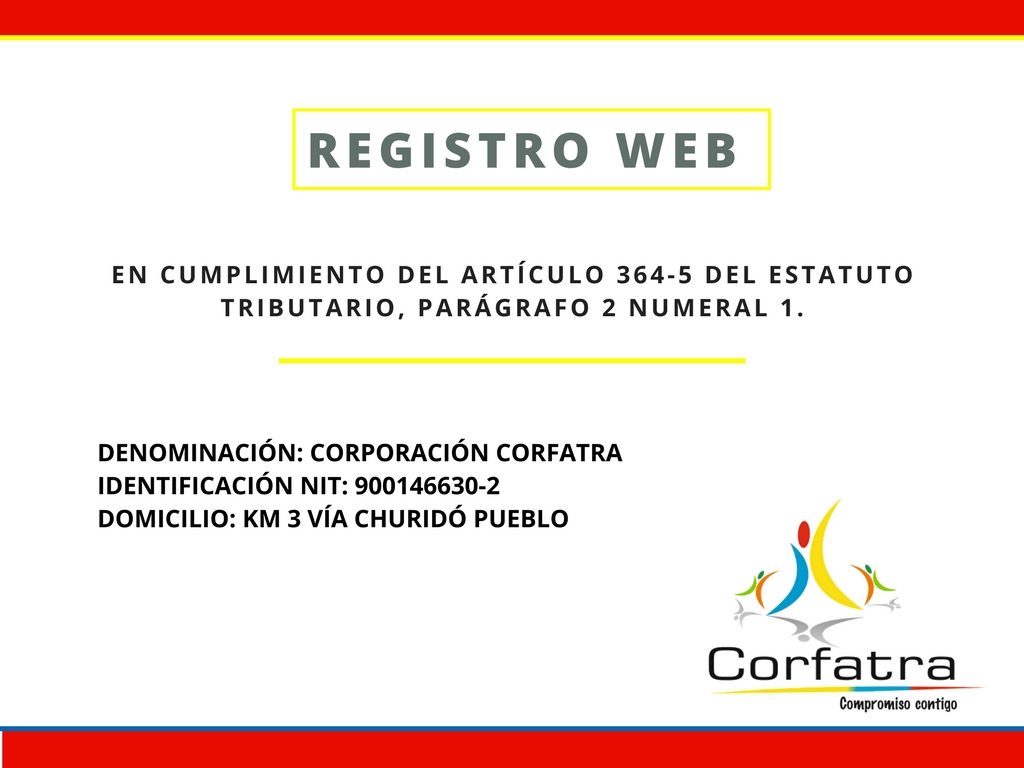 La Corporación Corfatra publica la siguiente información en cumplimiento del artículo 364-5 del Estatuto Tributario.